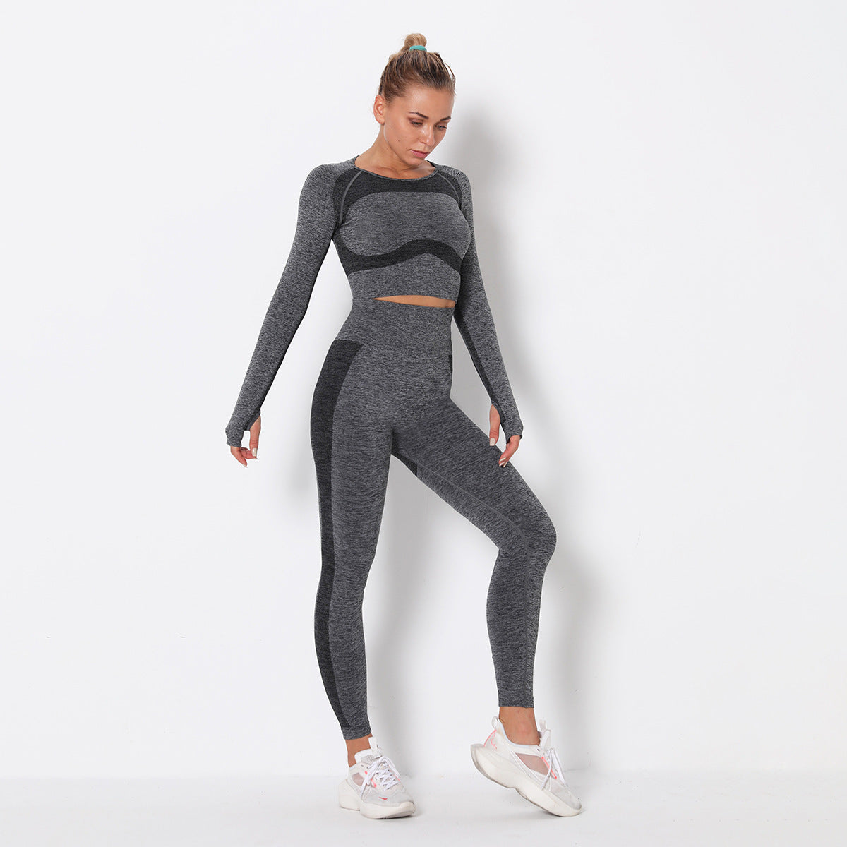 Avec des manches longues et un design taille haute, cet ensemble est parfait pour toutes les saisons, que ce soit en été, en hiver, au printemps ou en automne.